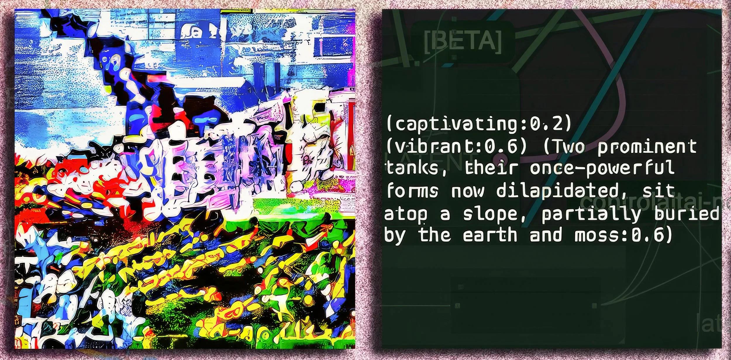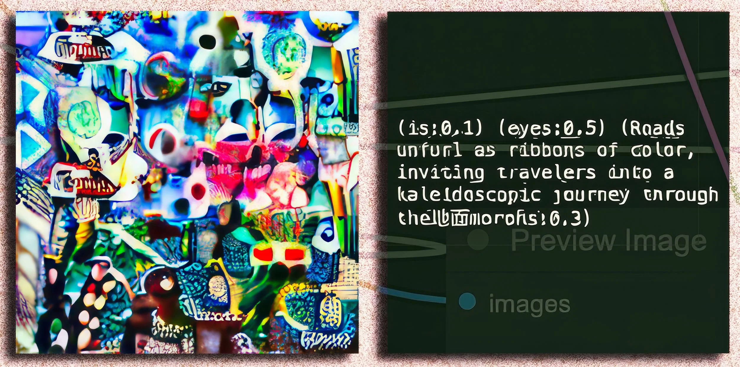 (2) Un modèle image-vers-texte délibérément déréglé génère, pour chaque sortie du processus de débruitage, une description décalée ou absurde.