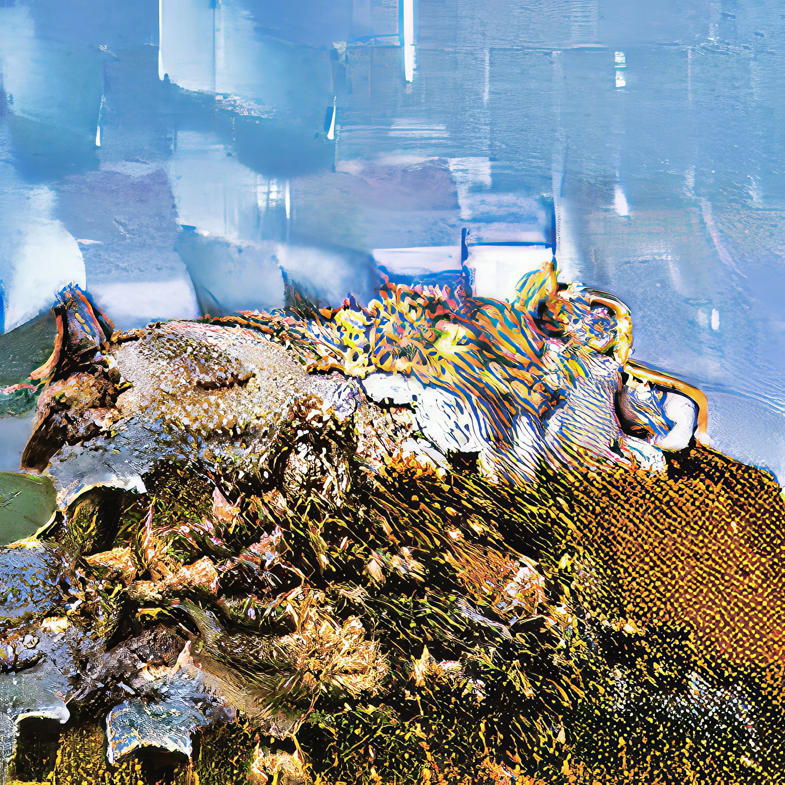 (1) L’image source est fragmentée puis reconstruite par un débruitage volontairement altéré (processus de base des modèles de diffusion, qui reconstruisent des images à partir de bruit).